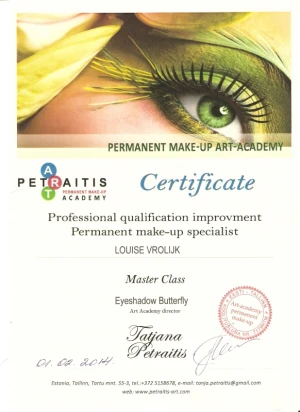 Wat leuk dat u belangstelling toont voor mijn specialiteit permanent make-up. Ik ben al meer dan 35 jaar schoonheidsspecialiste/pedicure en doe al meer dan 25 jaar permanent make-up. De meeste salons laten een reizende pmu specialist komen, maar ik doe het zelf, dus ik kan u persoonlijk met raad en daad terzijde staan. Ook doe ik NOOIT mee met acties voor permanent make-up op vakantieveilingen, groupon of social deal. Ik ben gespecialiseerd in de fijne haartjes techniek (hairstrokes) en pmu speciaal voor de rijpere huid.